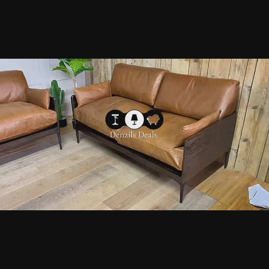 2x Bradlee 2.5 Seater Leather/oak Sofas Rrp £5000