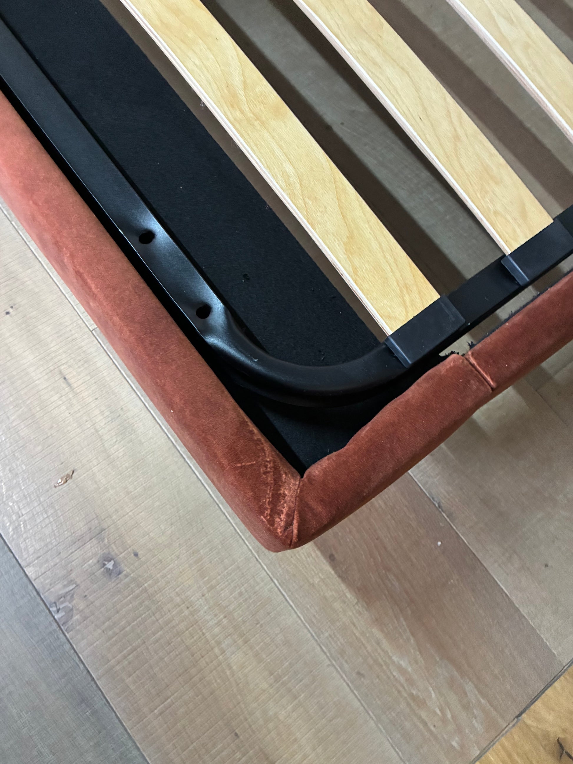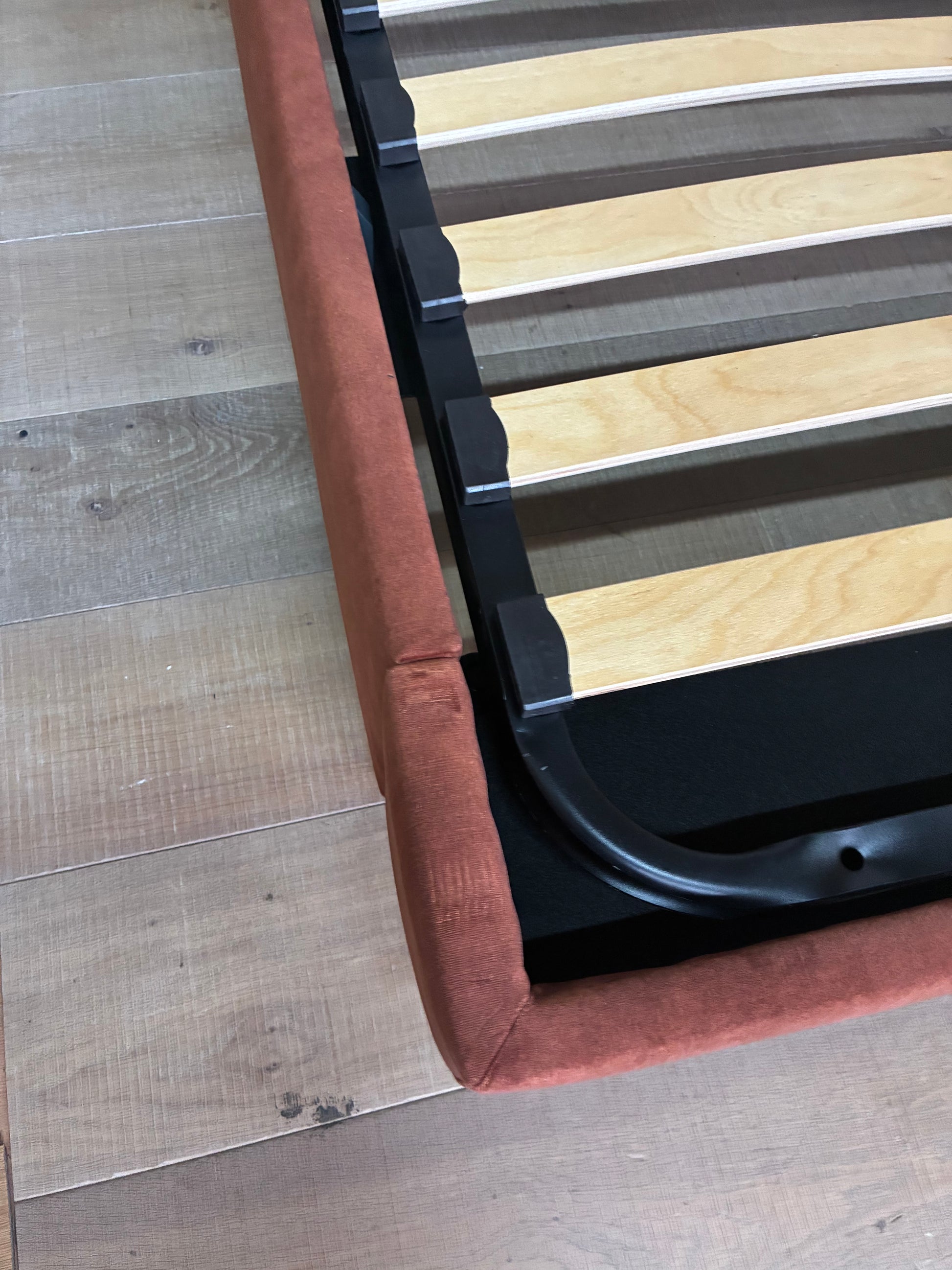 Ex display in good condition. Comes with slated cage as pictured. Doesn’t come with under bed net. 4 sets of the slats end caps have been replaced with alternative end caps. Slight loos but with weight of mattress or should hold perfectly. Original slats used.