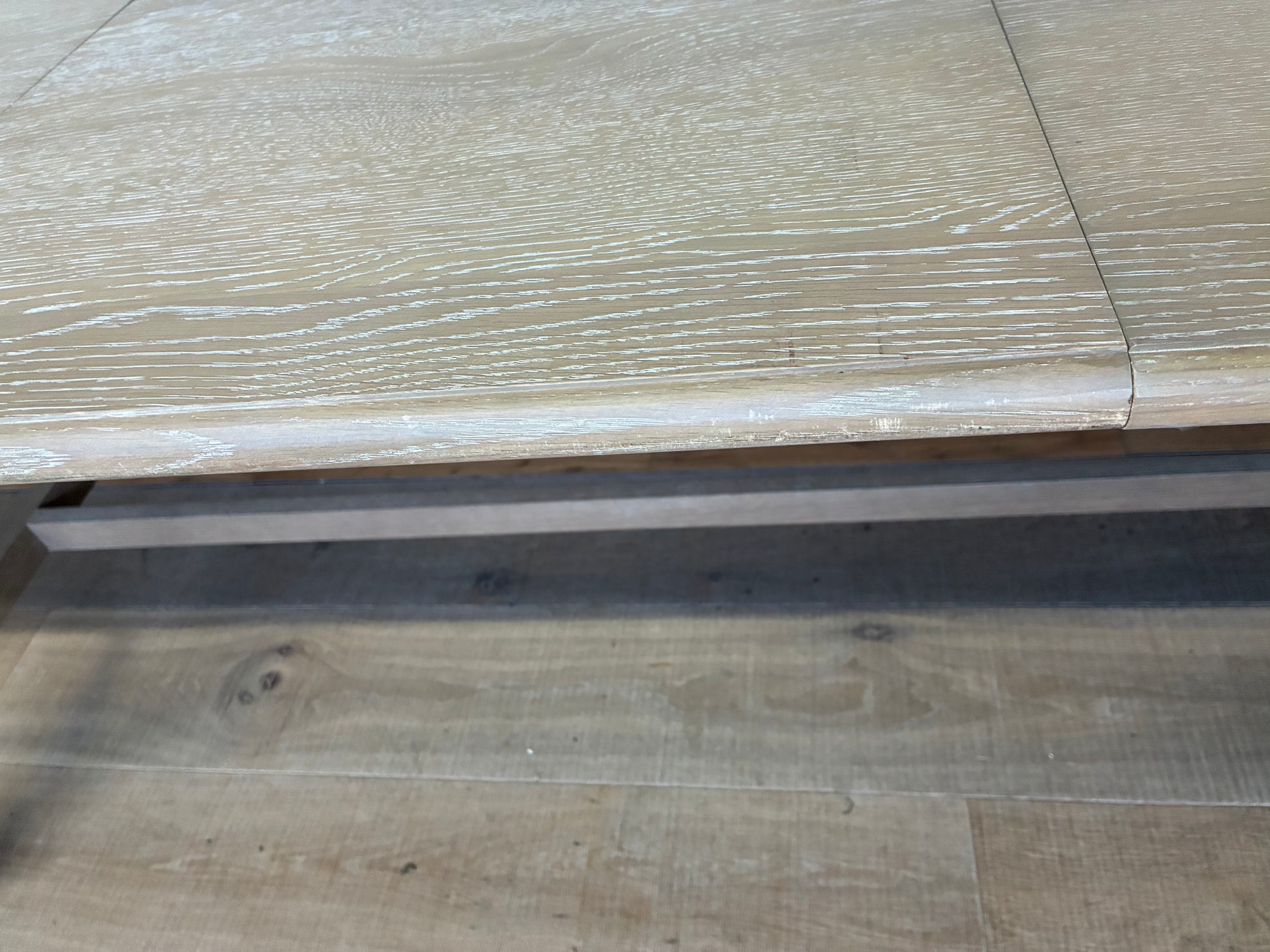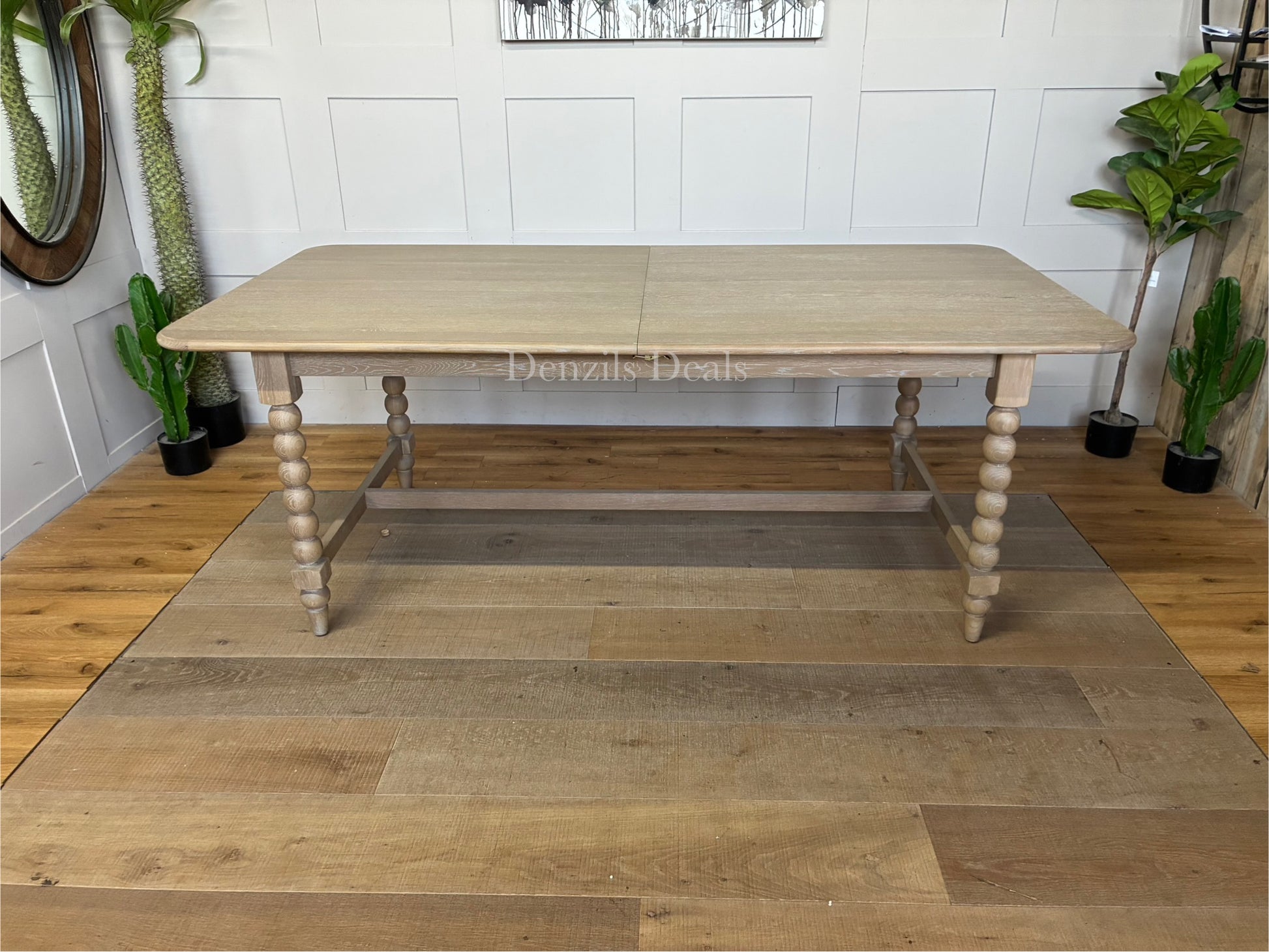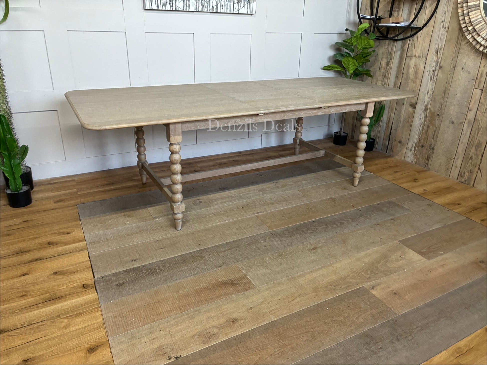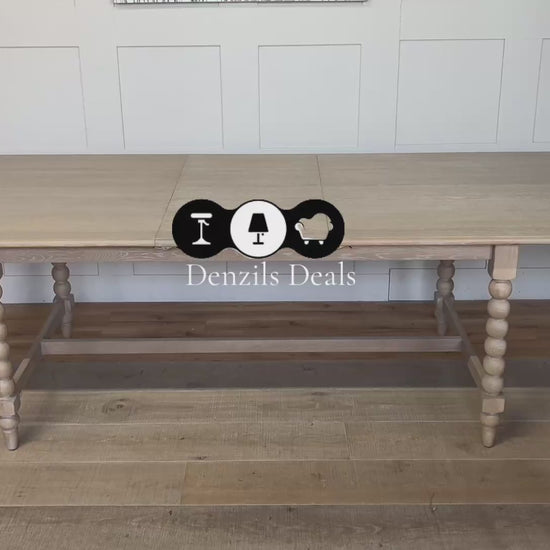 The legs feature hand-crafted "bobbing" detail, created by turning the wood on a lathe, a task carried out by the finest craftsmen. The table is made using beautiful oak solids and veneers where practical, with a very subtle lime wash tone to the finish which is soft and mellow.