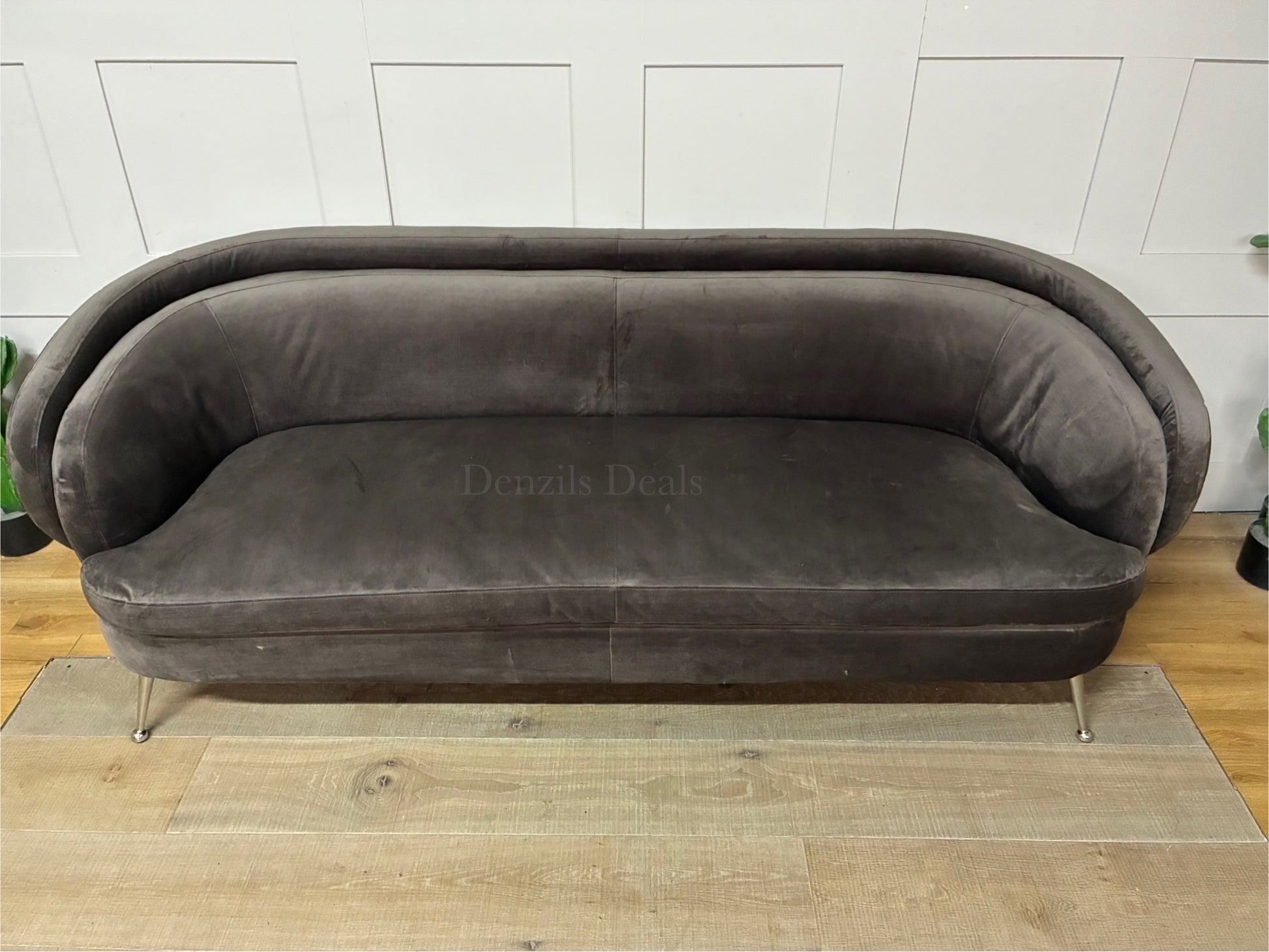 Gallery Interiors Tesoro Sofa Dark Taupe Velvet Rrp £1875 R61