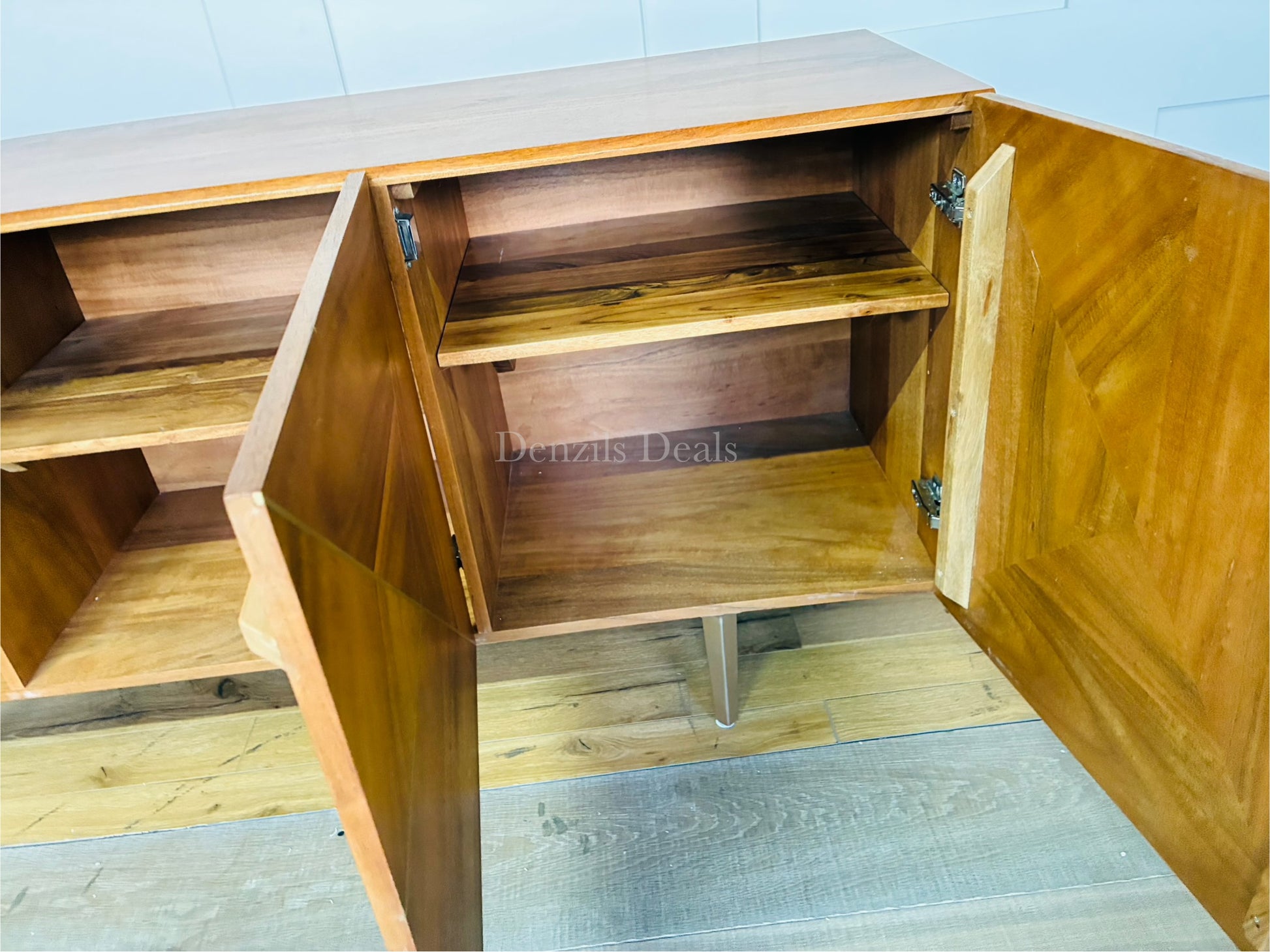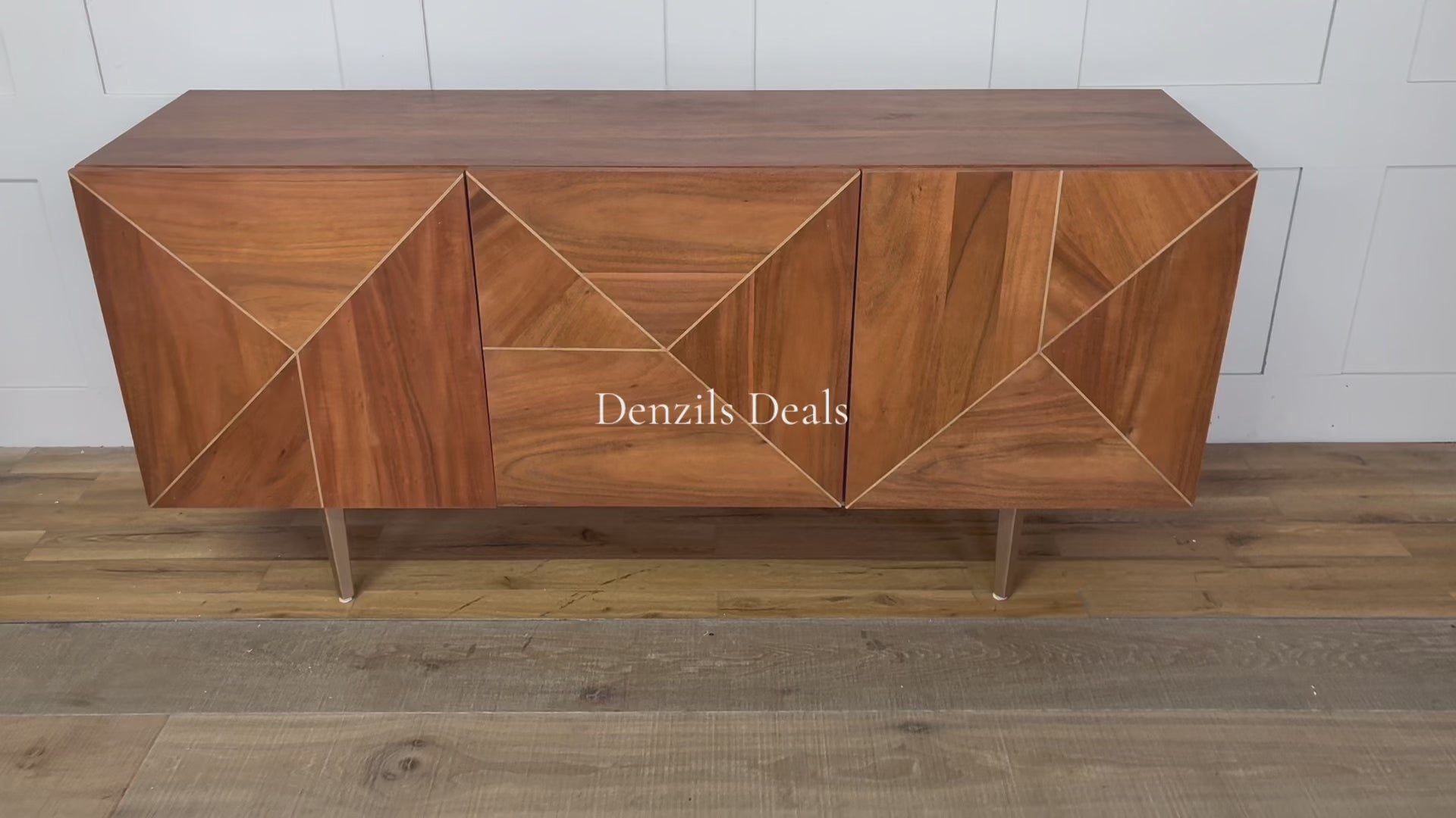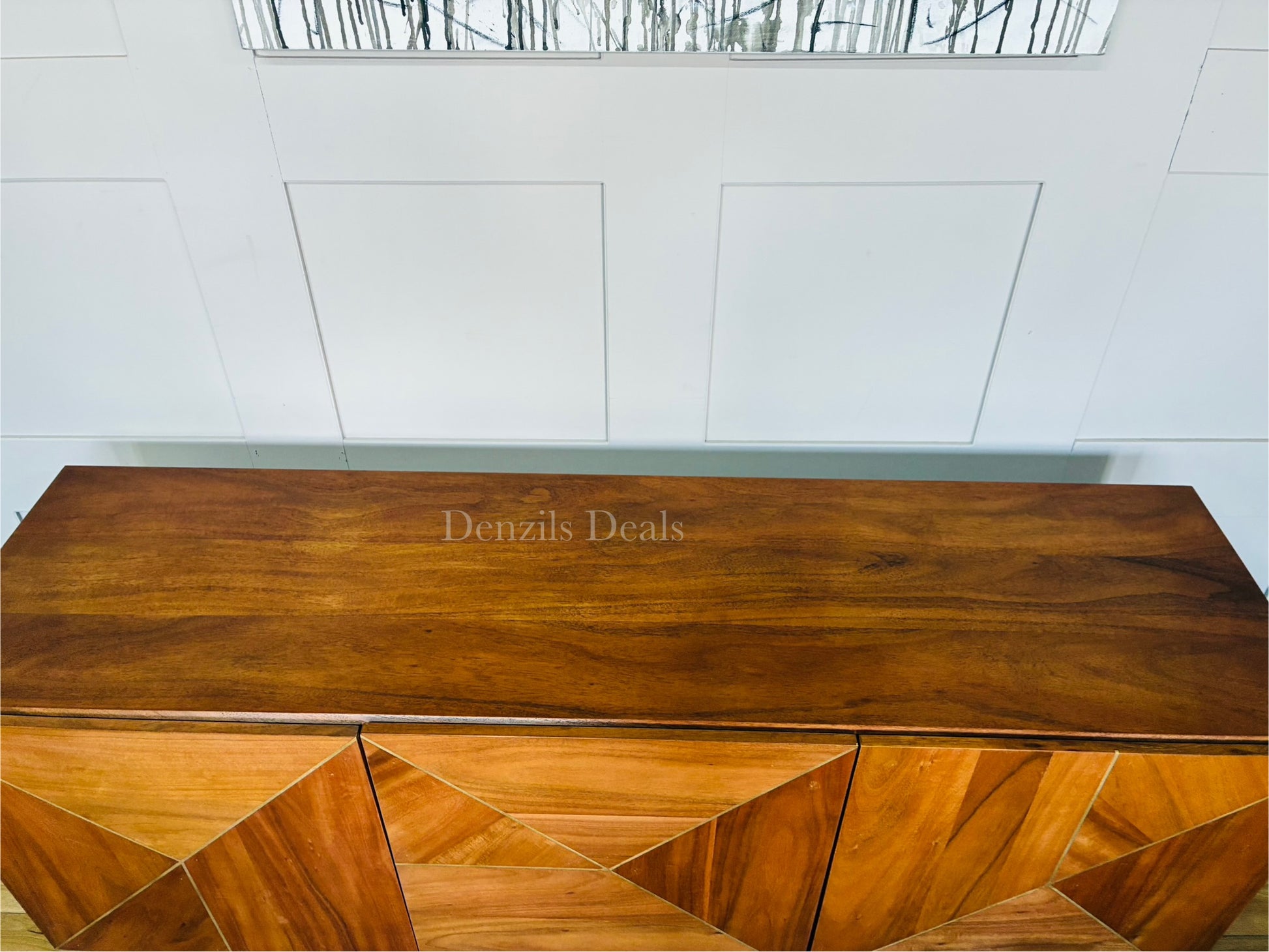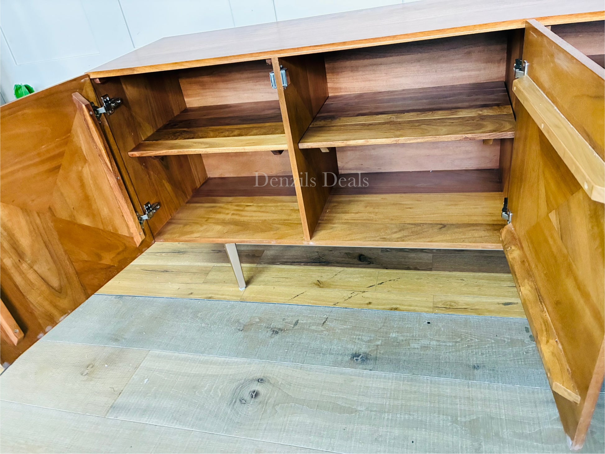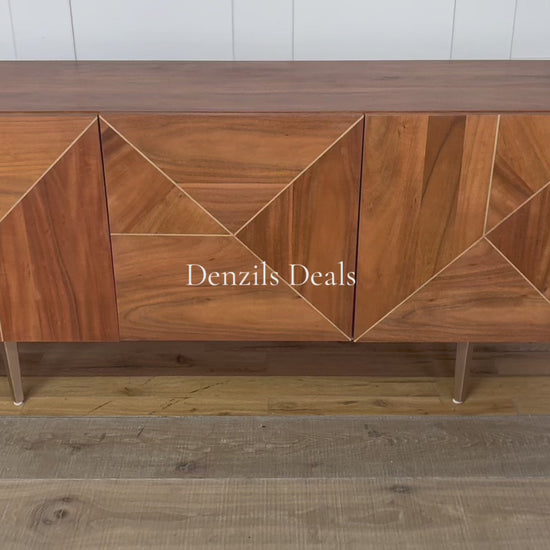 Ex display in good condition as pictured. Has a couple of minor marks as pictured. Product description Product code: 86258702 Designed by Swoon, made by us. With a shared commitment to exceptional design and quality, we've collaborated to create an exclusive furniture collection for the modern home. The Mendel sideboard marries an impressive wood construction with subtle highlights of Art Deco-inspired design. An offset grain direction emphasises the natural beauty of its acacia wood and veneer profile, that's accented with sleek, geometric inlaid lines of brass. Dimensions H74.5 x W162 x D45cm |