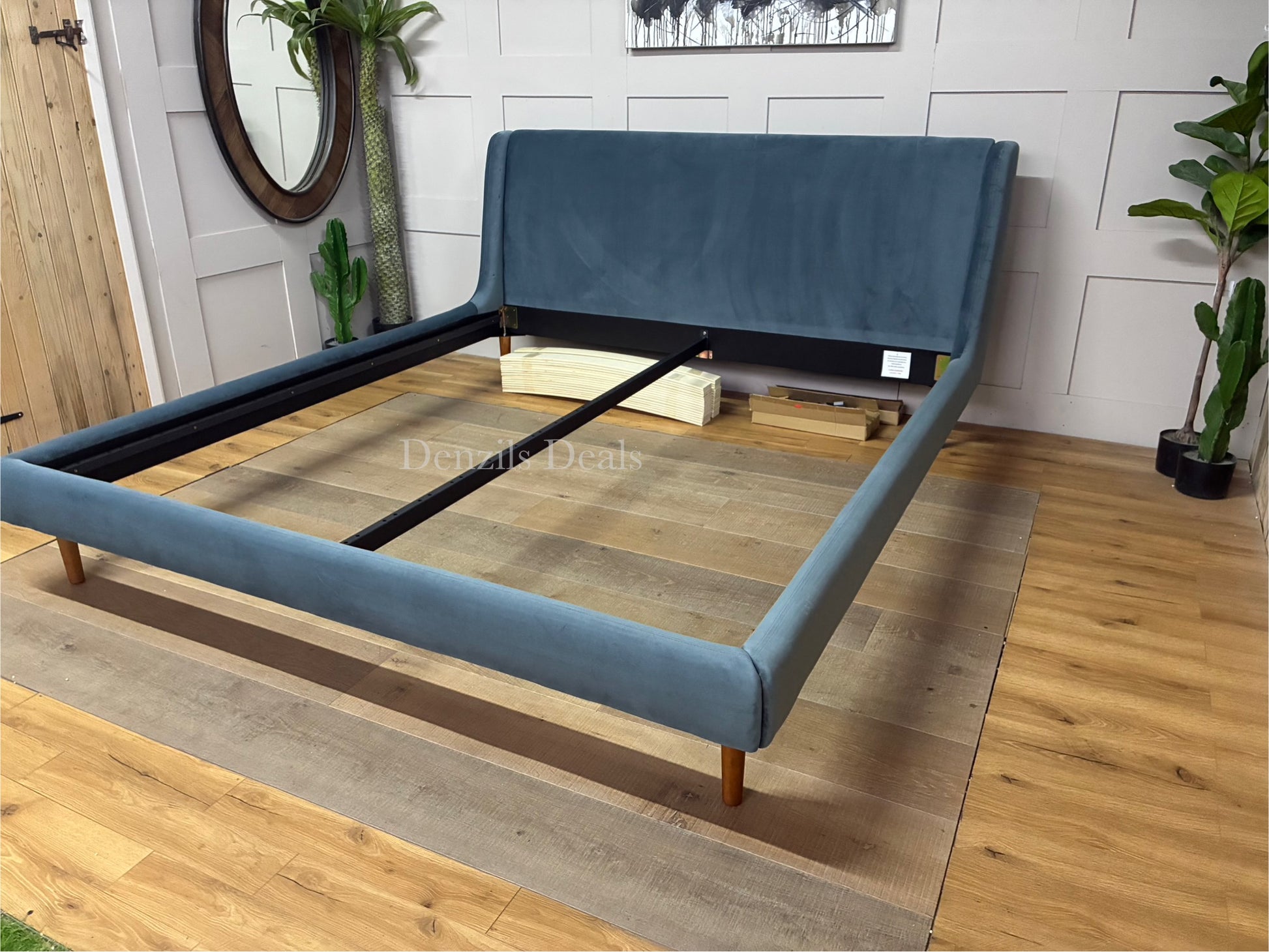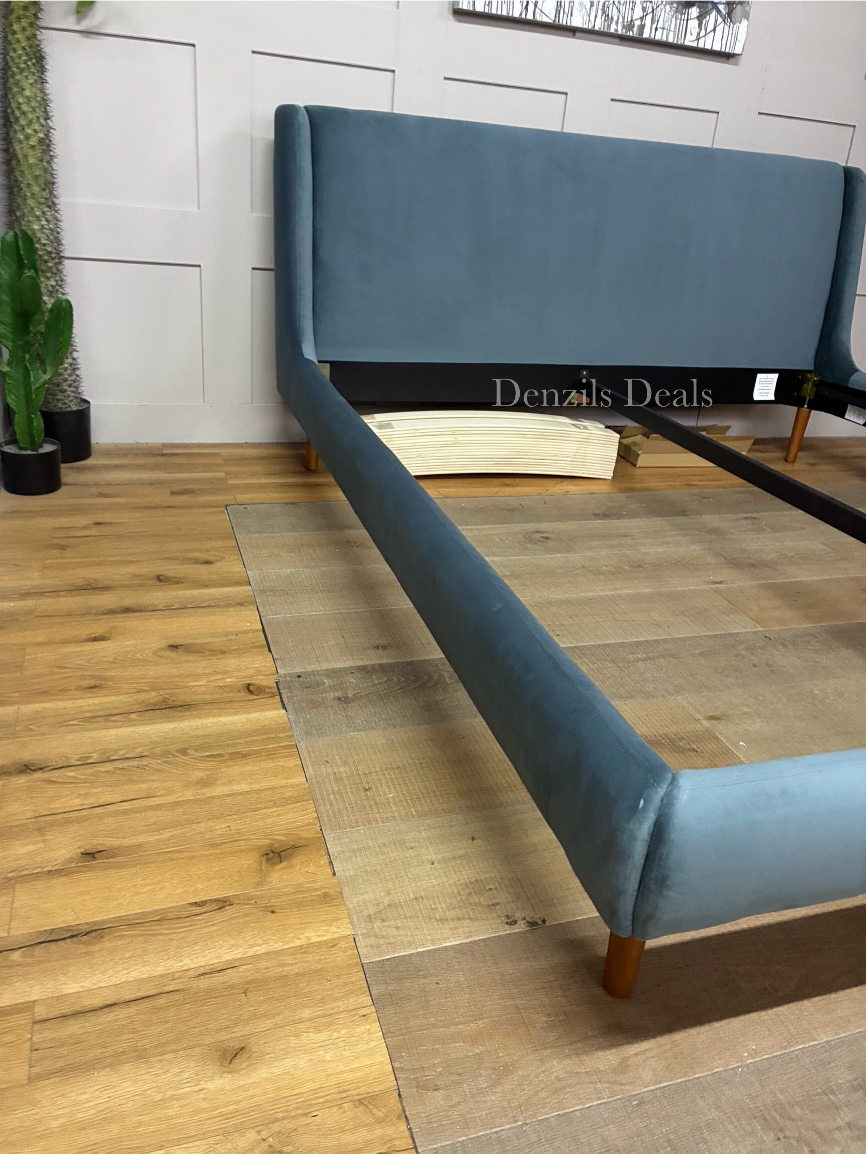 Our Mid-Century Sweep bed frame has a sleek, retro-inspired shape. Its streamlined profile marries soft curves and sharp lines, resting on tapered wooden legs. Sprung slats in the base provide additional support for you and your mattress.
