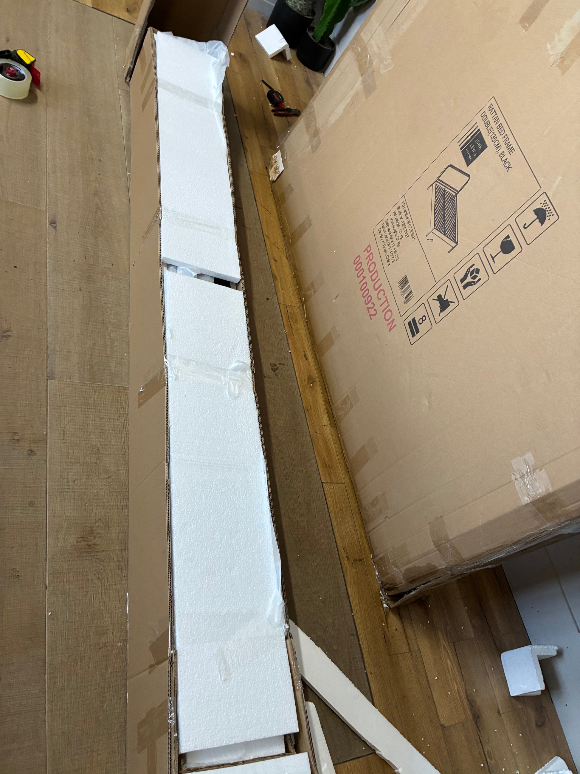 As new in box. Packaging slightly damaged but as pictured the bed is not not damaged and in new condition. Never been assembled. Comes complete with manual and all accessories.
