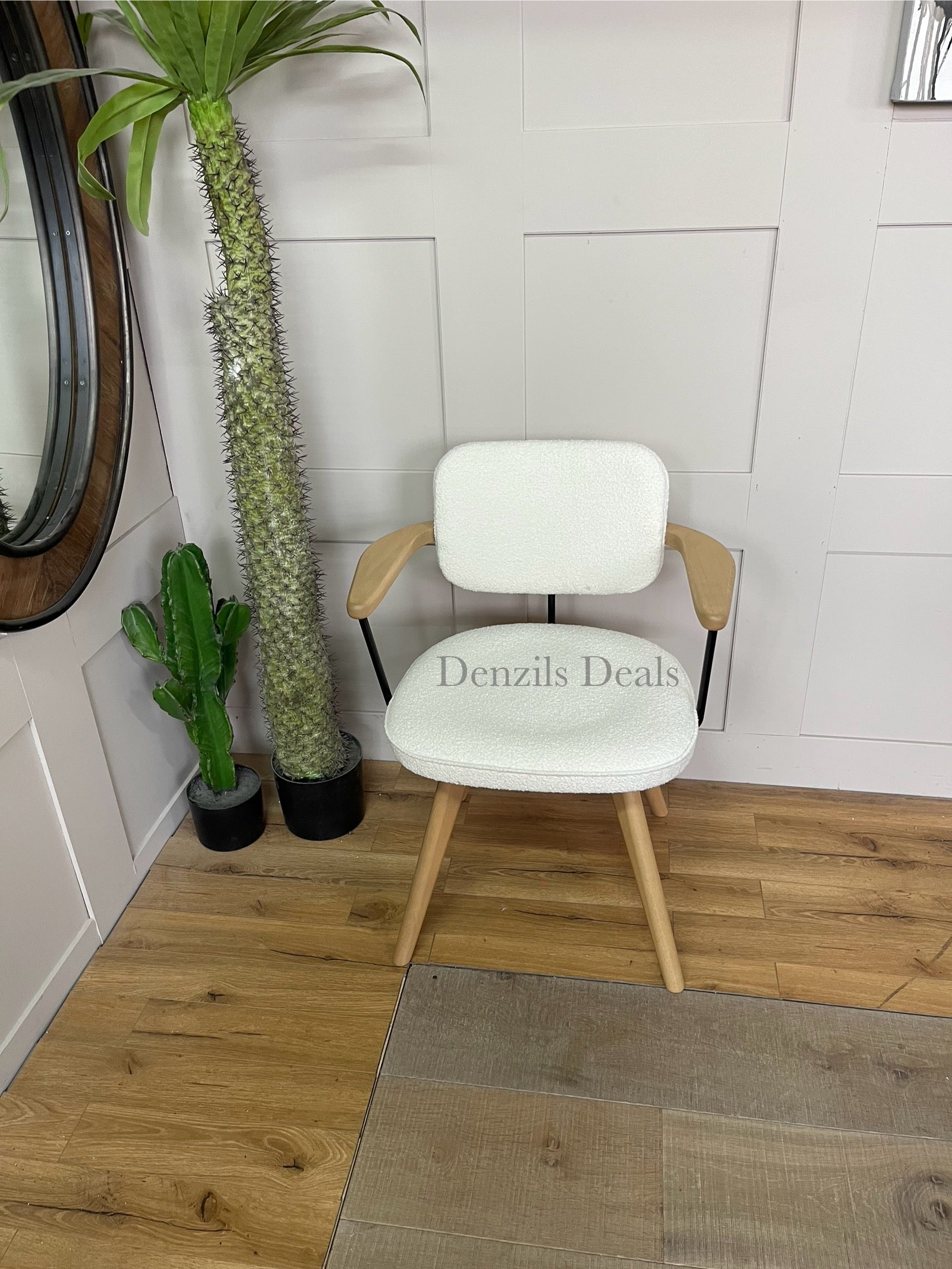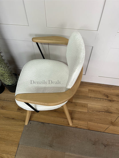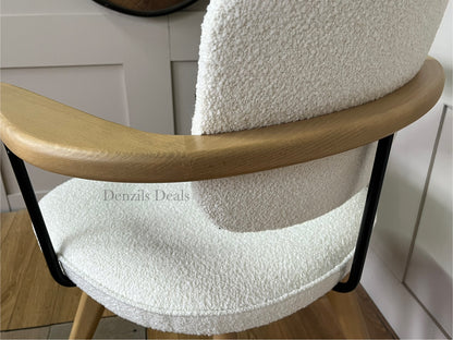Suitable for short periods at your desk, our Soren chair has a smart, Scandi-inspired shape and we've made the frame from a combination of high-quality timbers. The splayed legs look distinctive and provide stability, while the fixed, integrated armrests encourage a good posture. Plus, the upholstered seat is foam-filled for extra comfort. Available in a soft, or textured bouclé fabric.