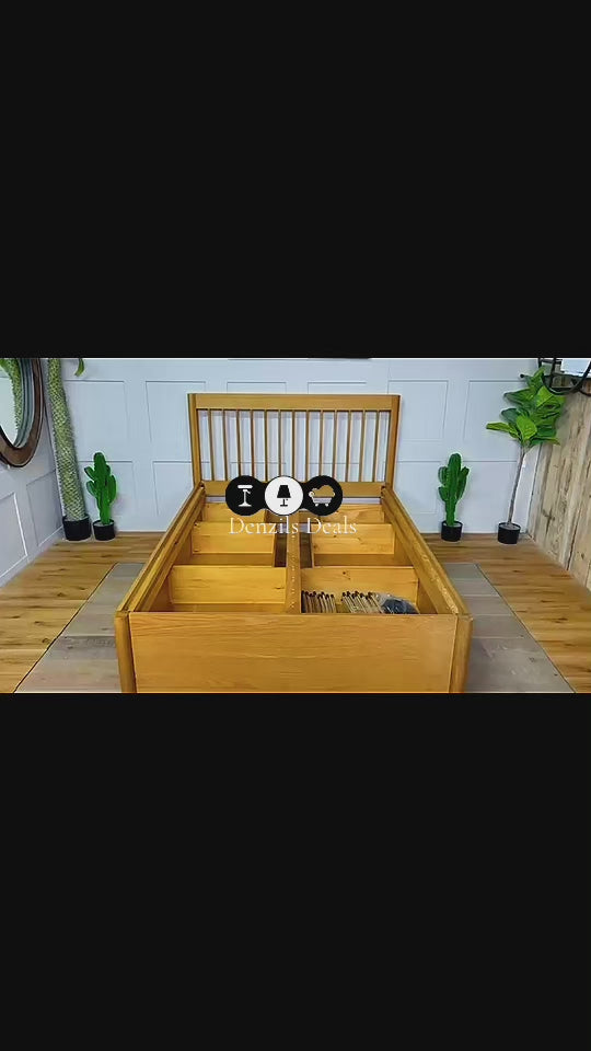 Our in-house designers focused on sturdy woodwork and softer shapes when creating our Spindle range of bedroom furniture. If you're in need of extra storage space in your bedroom, this is the answer. This bed frame is designed with three deep drawers on either side of the frame, so there's no excuse for clutter when your spare bed linens, extra clothes and even shoes have a new home.