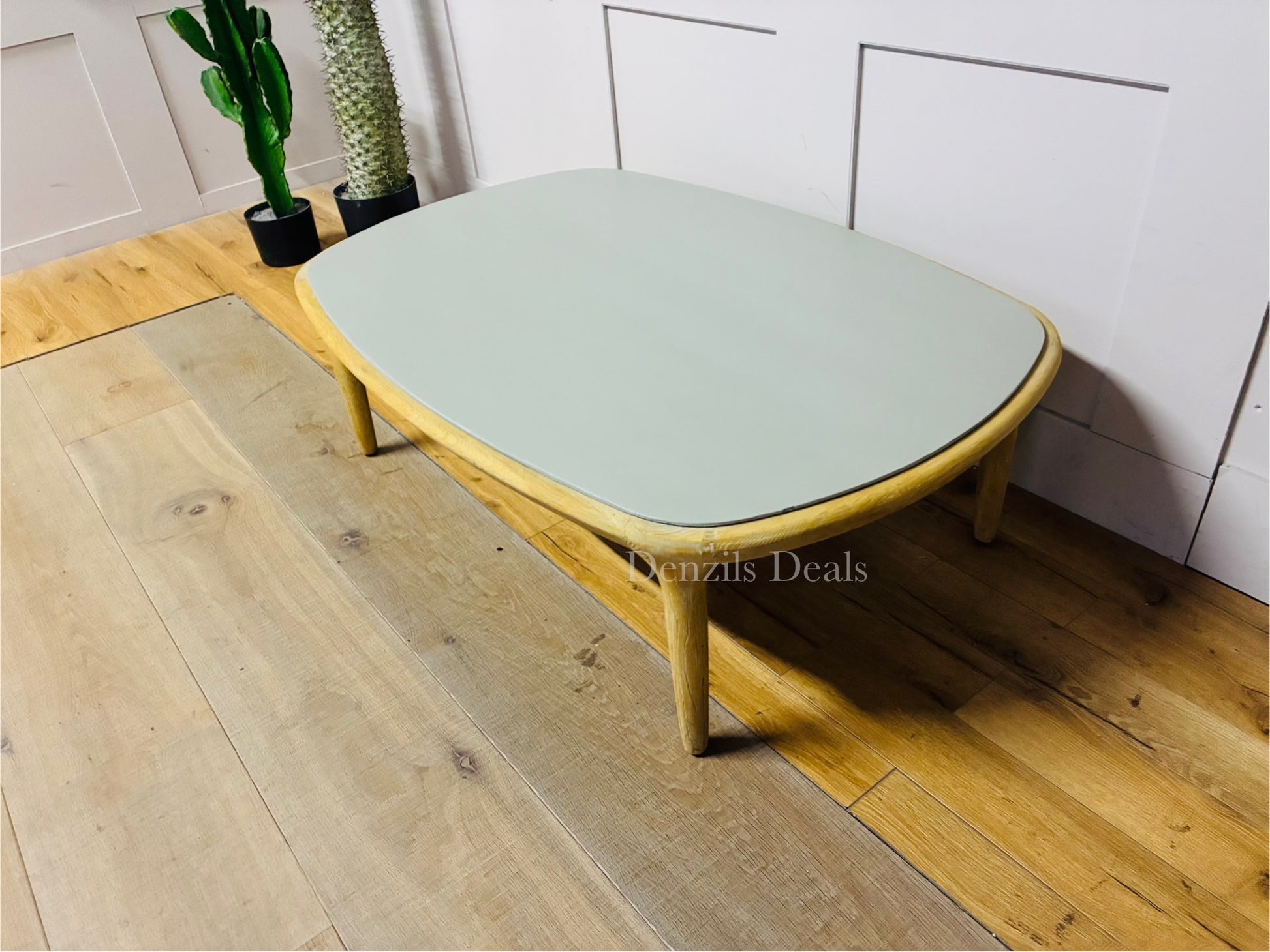 Ex display which came with some markings on the surface. We have had the top panel re spayed in cement grey and Matt lacquered. As pictured the coffee table top is now as new with no damage. Please see our pictures.