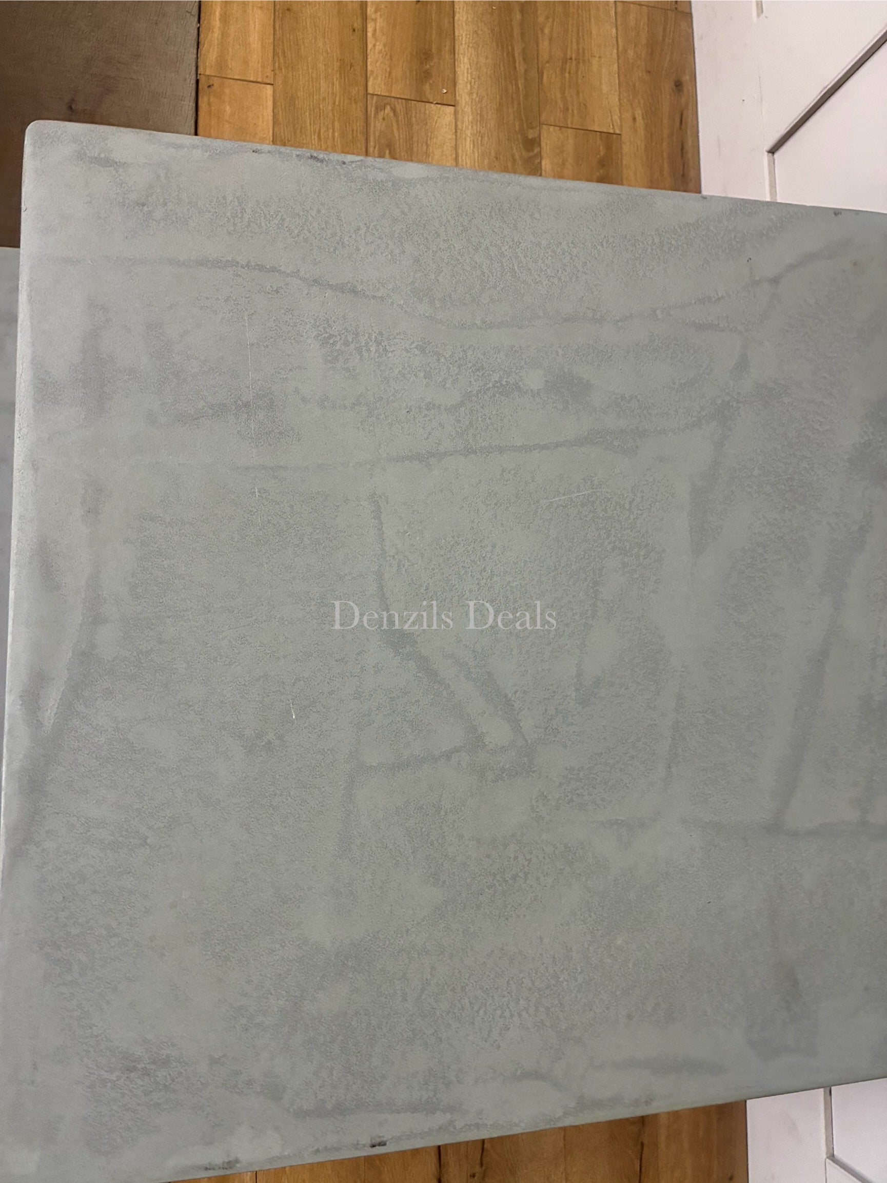 The top is made from a concrete-style resin that takes spills in its stride.