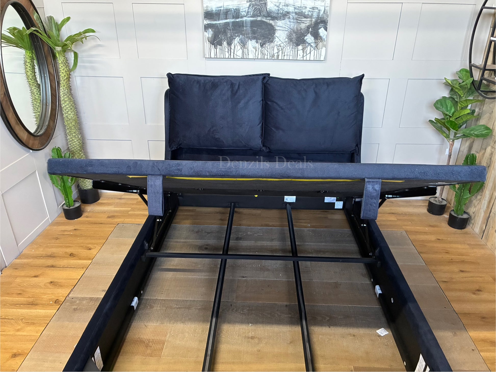 Sink into a blissful night’s sleep on our Wren Smooth Midnight velvet ottoman king-size bed. The fixed pillow-back headboard brings superior comfort to bedtimes and adds a touch of luxury that you can enjoy night after night.