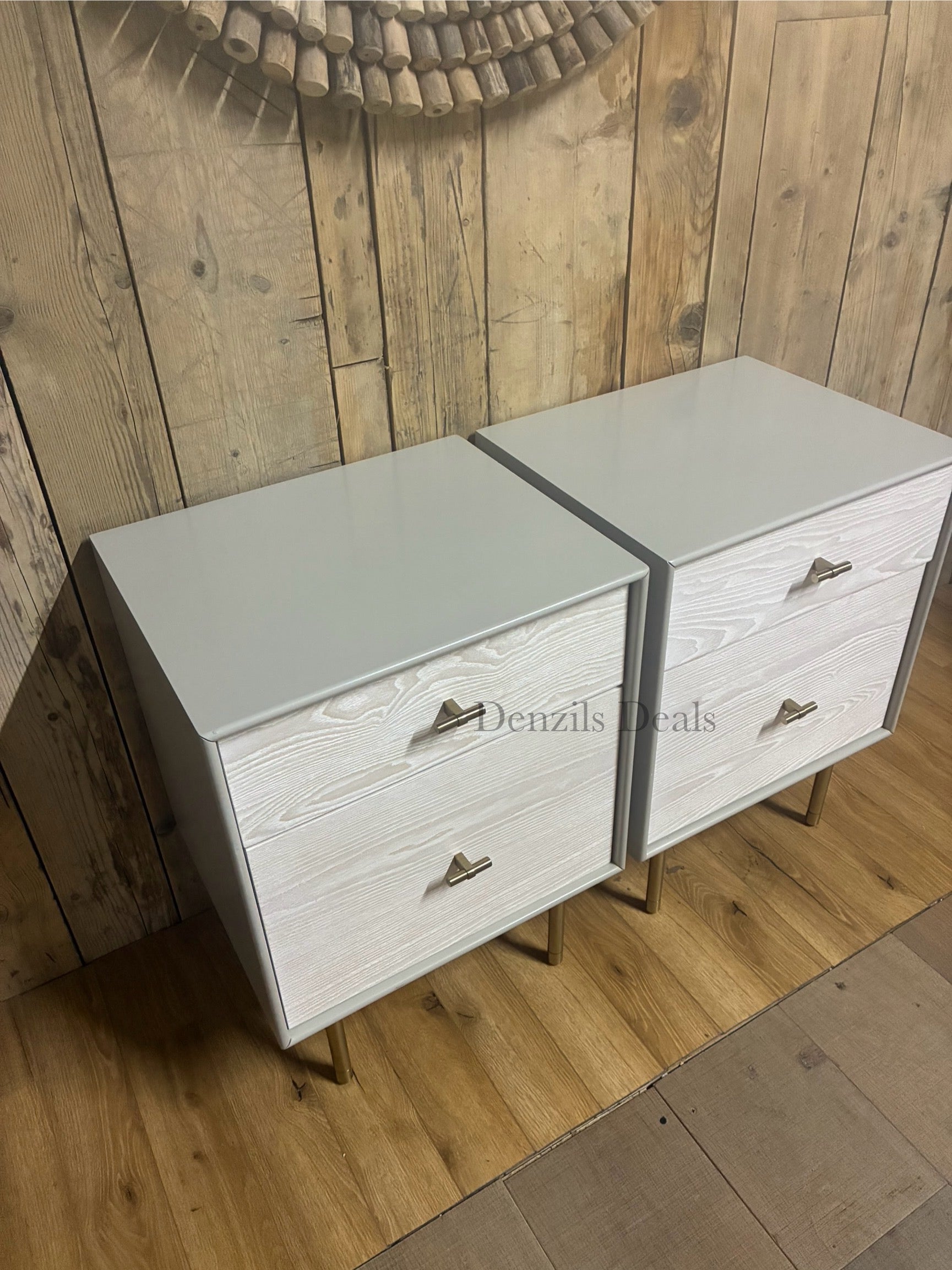 West Elm Modernist Wood & Lacquer Bedside Tables X2
