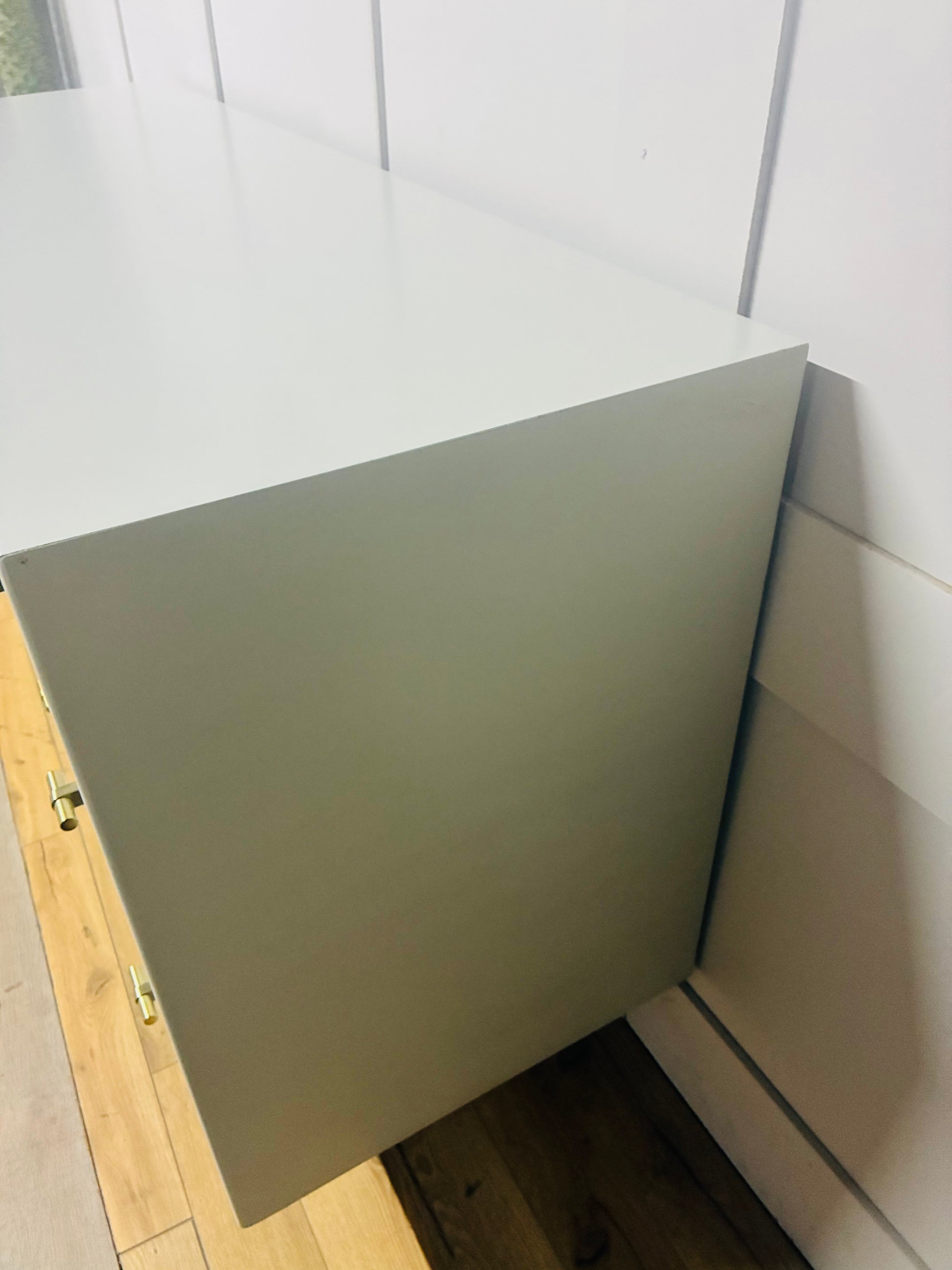 Bottom door swings open to reveal a cabinet.