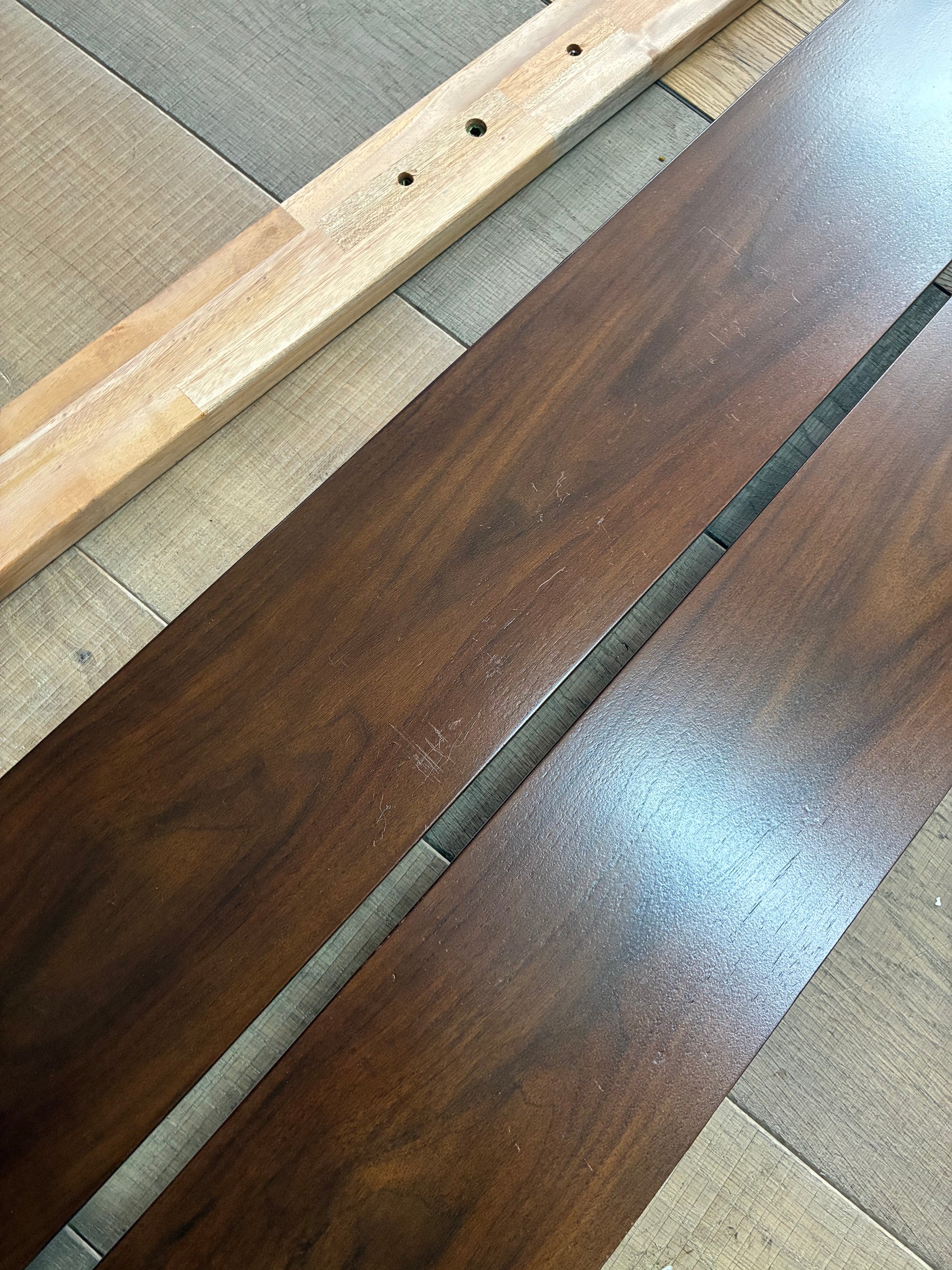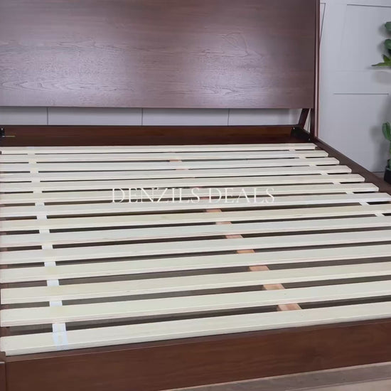 Engineered wood headboard, footboard and siderails covered in walnut wood veneer.